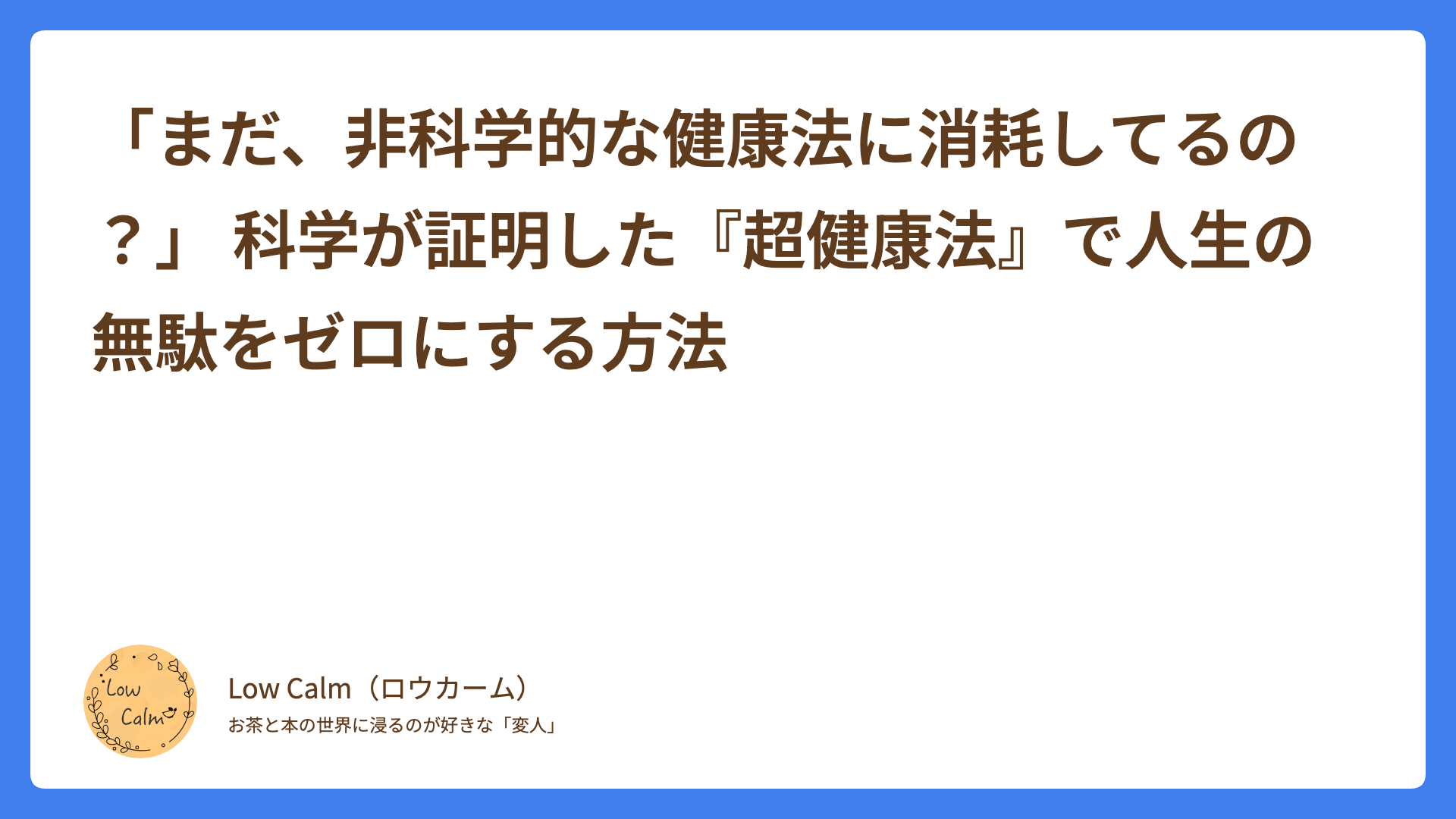 「まだ、非科学的な健康法に消耗してるの?」 科学が証明した『超健康法』で人生の無駄をゼロにする方法 2025.11.08 ビジネス・経済 Low Calm 【時間を無駄にしない おすすめ本紹介】 Low Calm