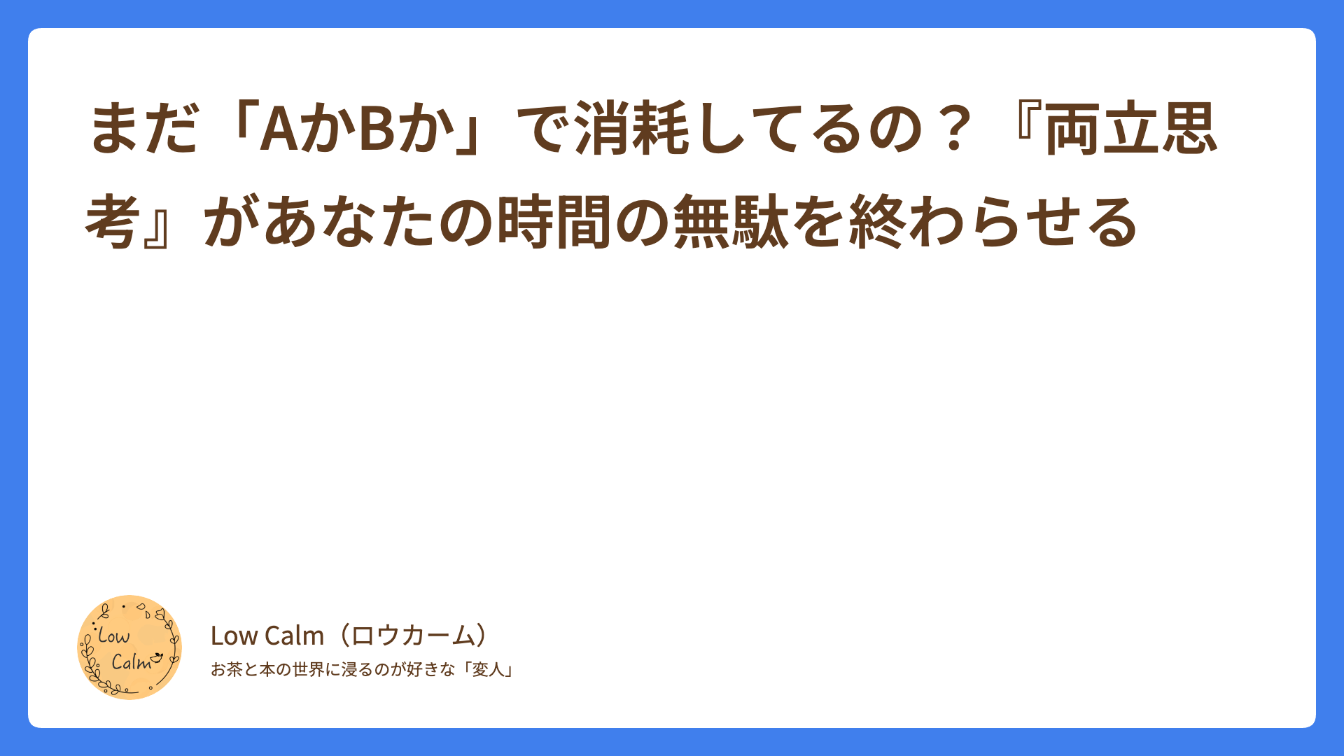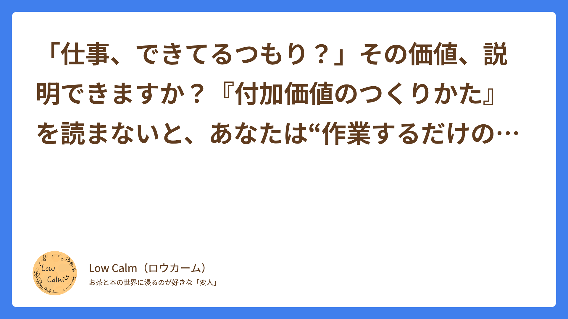 「仕事、できてるつもり?」その価値、説明できますか?『付加価値のつくりかた』を読まないと、あなたは“作業するだけの人”で終わる。 2025.11.10 ノンフィクション Low Calm 【時間を無駄にしない おすすめ本紹介】 Low Calm