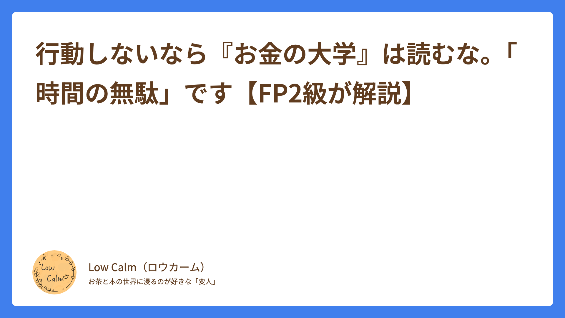 行動しないなら『お金の大学』は読むな。「時間の無駄」です【FP2級が解説】 2025.11.14 お金と将来の不安を軽くする本 Low Calm 【時間を無駄にしない おすすめ本紹介】 Low Calm