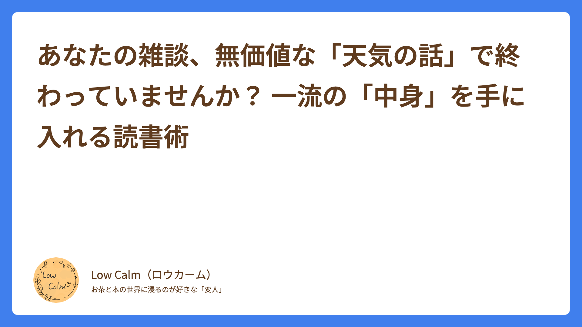 あなたの雑談、無価値な「天気の話」で終わっていませんか? 一流の「中身」を手に入れる読書術 2025.11.06 ビジネス・経済 Low Calm 【時間を無駄にしない おすすめ本紹介】 Low Calm
