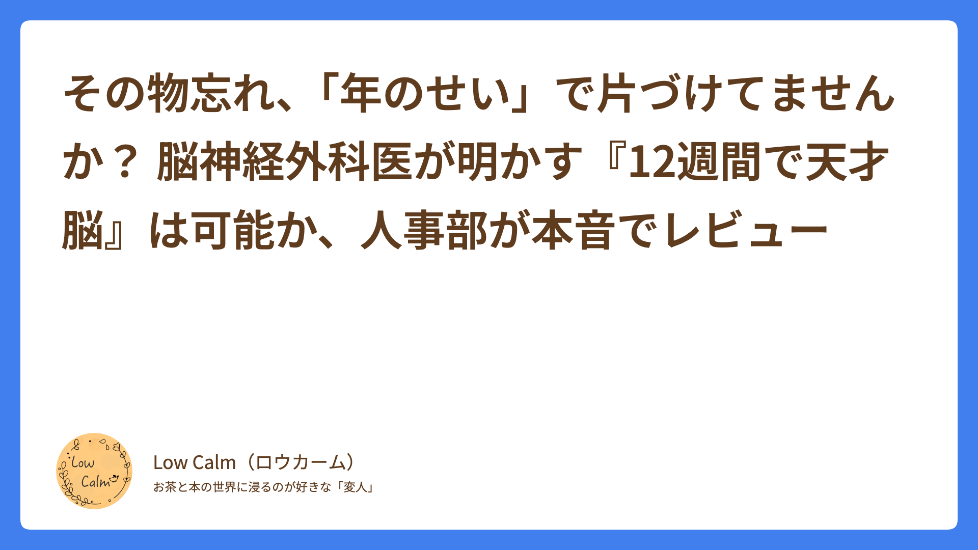 Low calm流「記憶を外部化する」3つのステップ