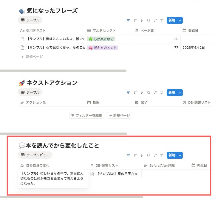 単にあらすじを追うのではなく、読後に残った「心のさざなみ」を“本読んでから変化したこと”として入力・整理します。