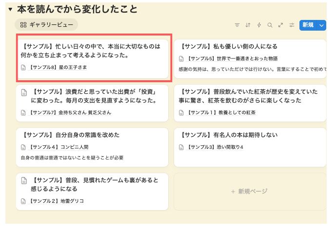 さらには、読書体験で影響を受けたことをひとつのブロックにまとめることで、後からどの本からどんな影響を受けたのかを、再認識をすることができます。