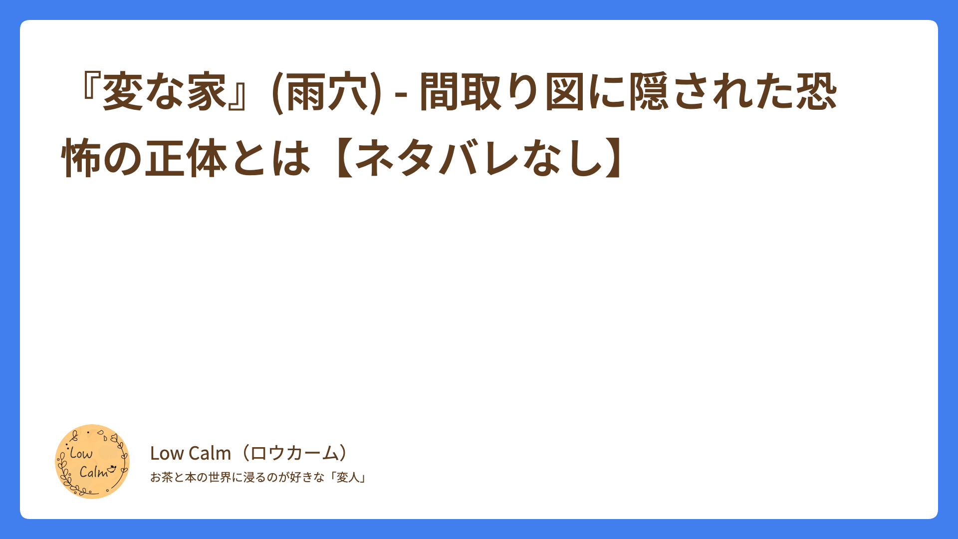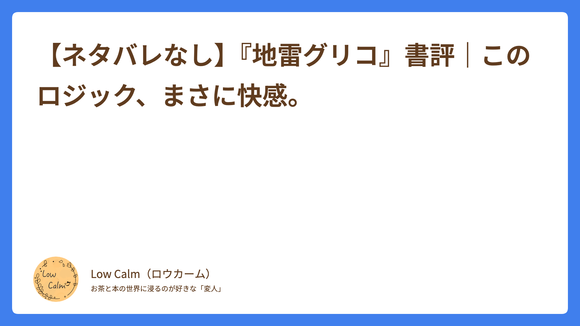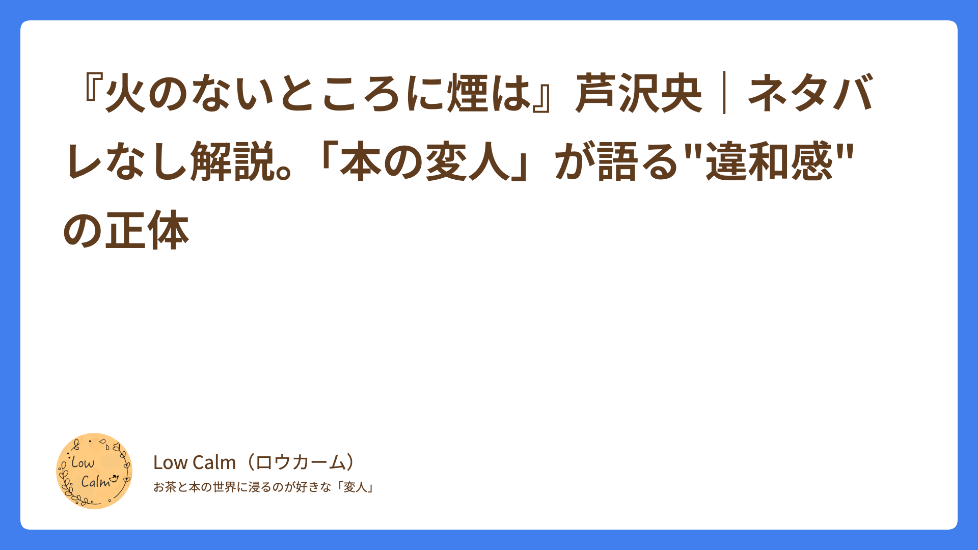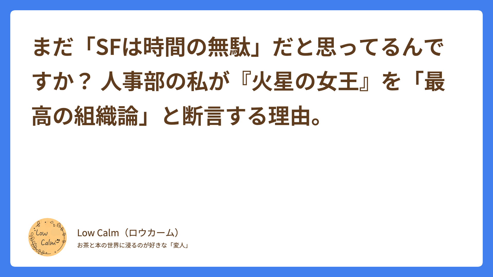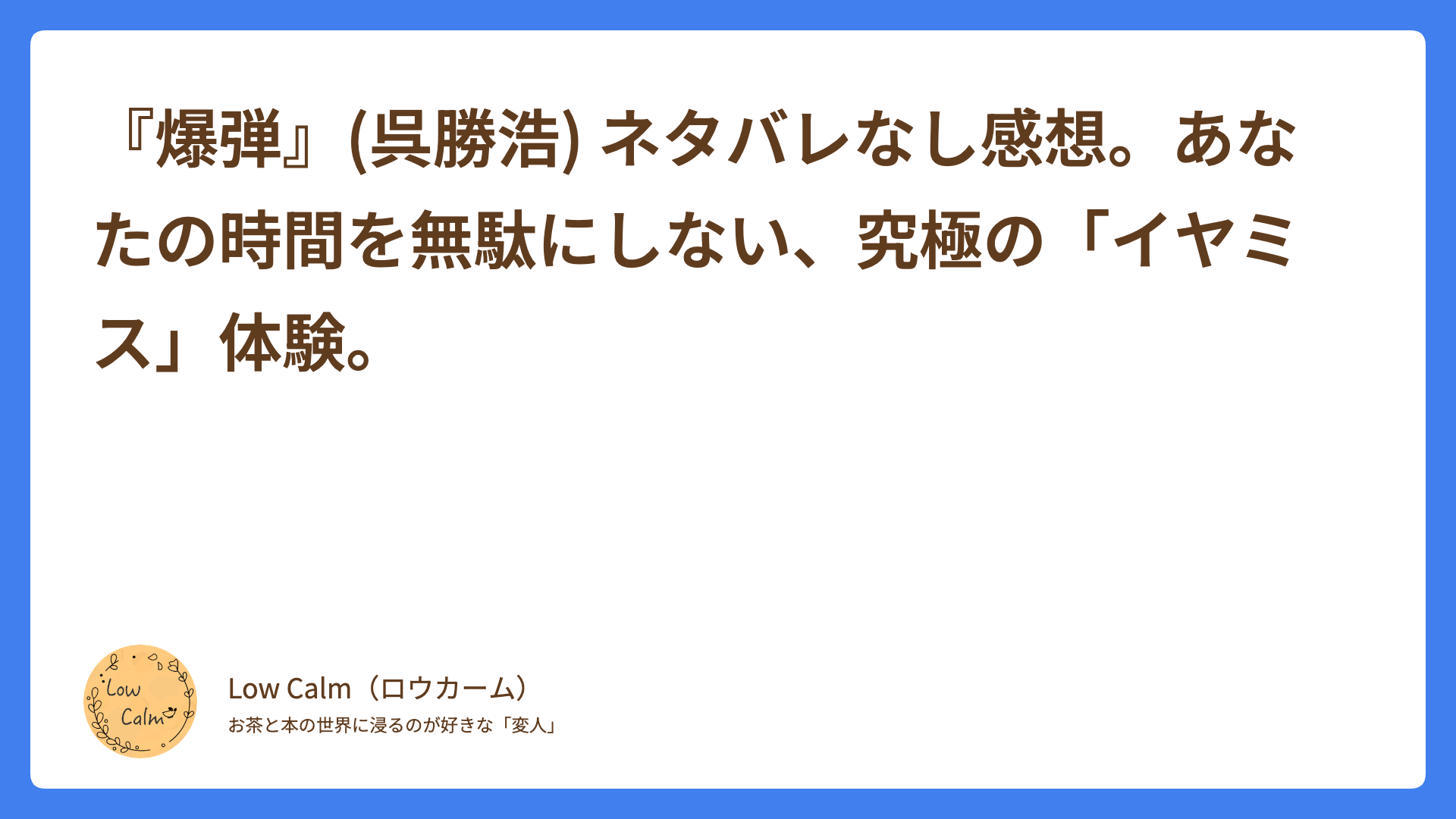 「時間の無駄」。 私、Low calmが読書において最も憎む言葉です。美味しいお茶を淹れる時間、その本を選ぶ時間、そして読む時間。その全てが「失敗」に終わるほど虚しいことはありません。