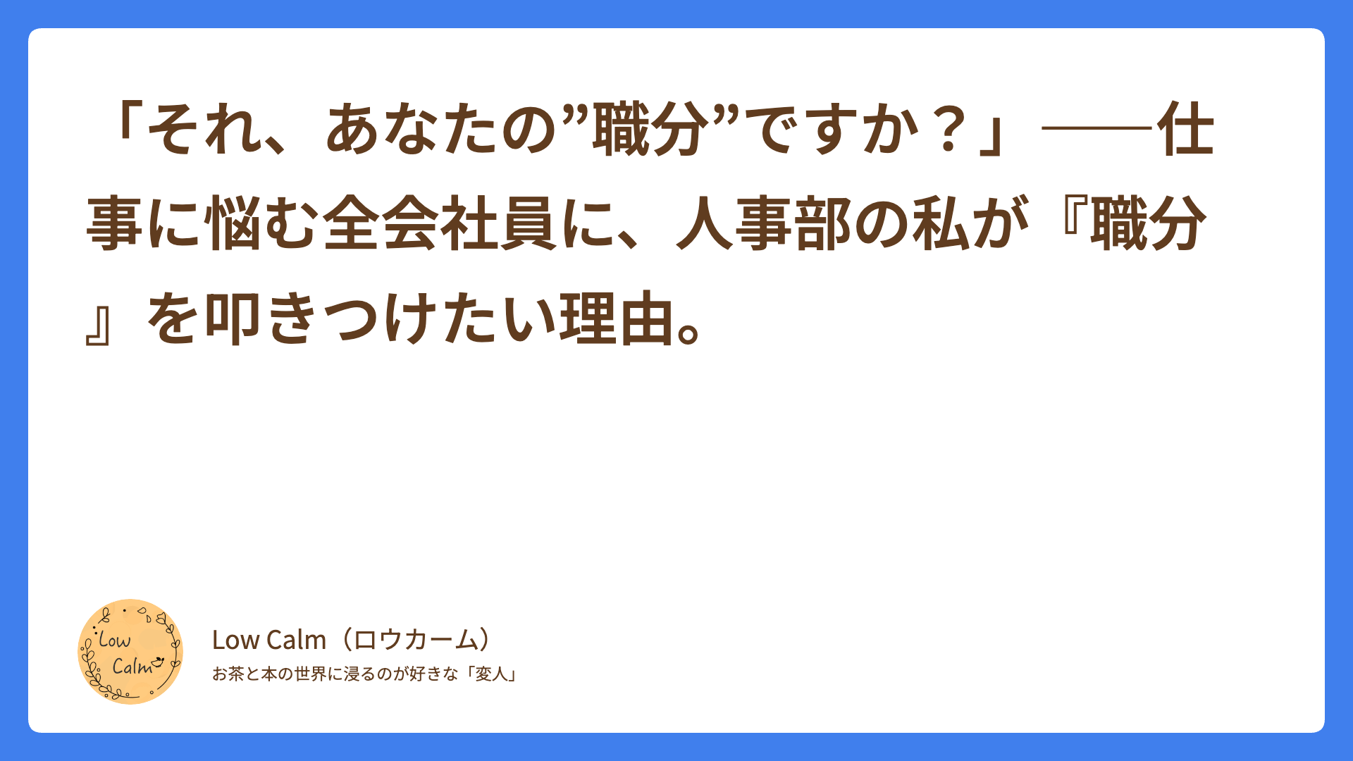 • 人事部の私(Low calm)が震撼した、「仕事の本質」がわかるベスト3