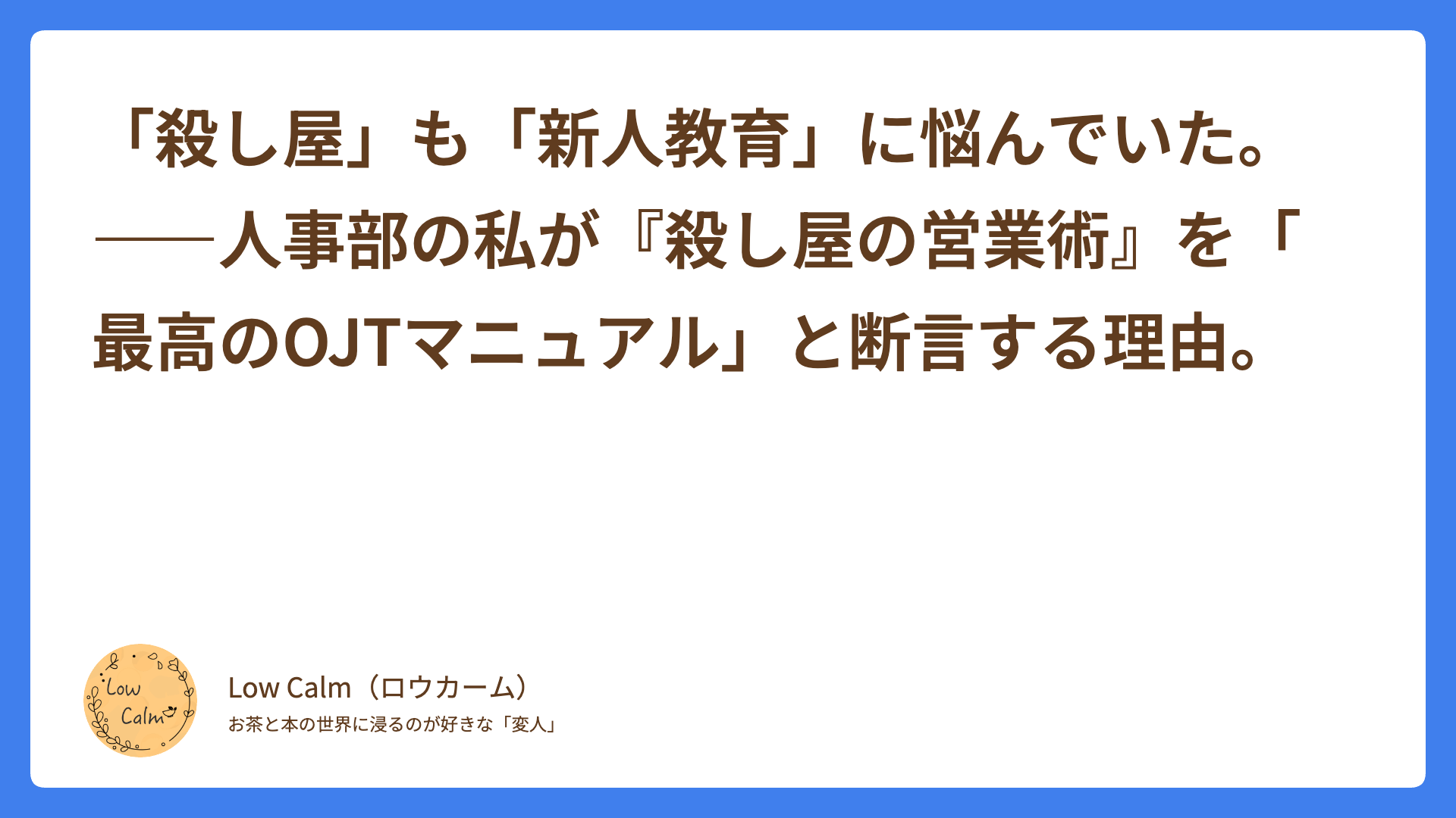 「殺し屋」も「新人教育」に悩んでいた。――人事部の私が『殺し屋の営業術』を「最高のOJTマニュアル」と断言する理由。