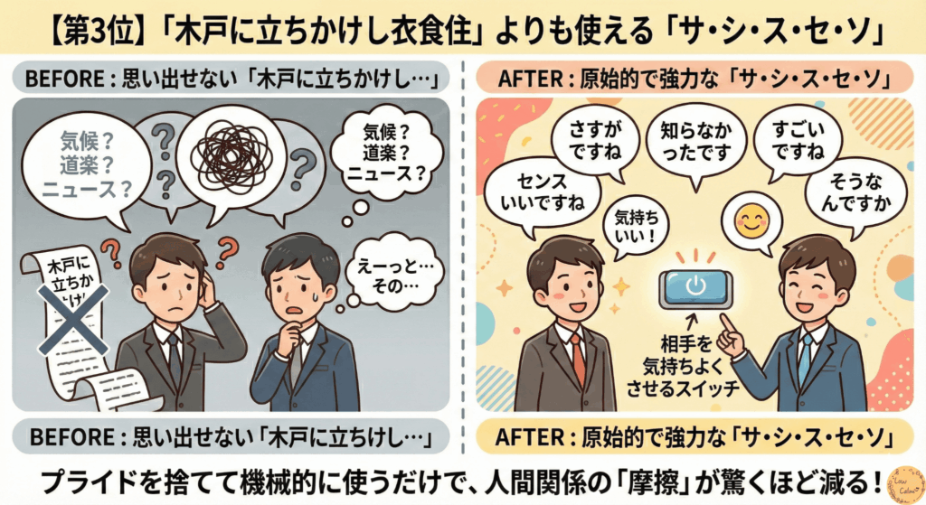 【第3位】「木戸に立ちかけし衣食住」よりも使える「サ・シ・ス・セ・ソ」